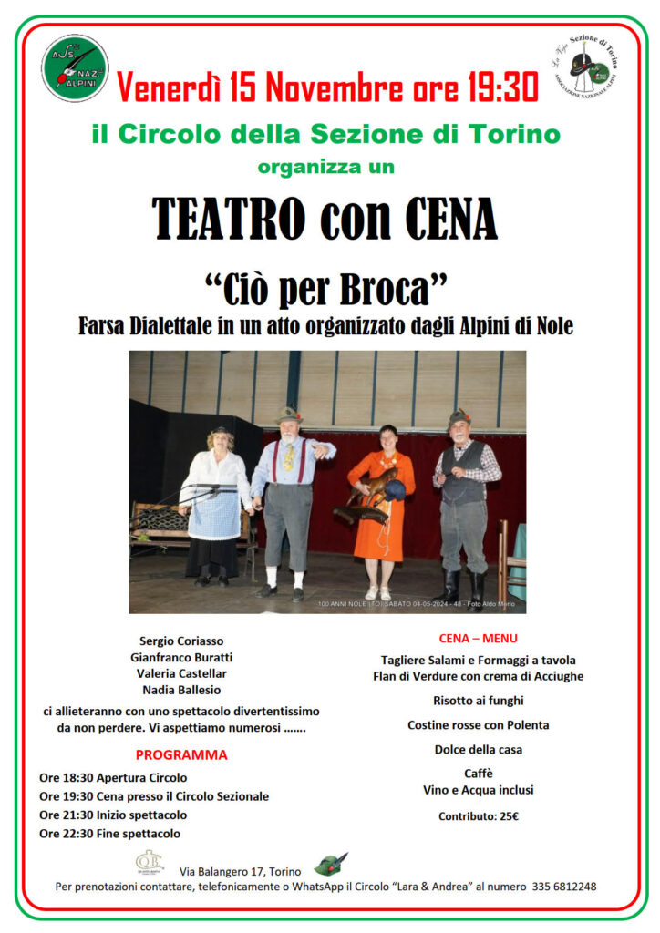 Venerdì 15 Novembre alle ore 19:30 il circolo della Sezione di Torino
