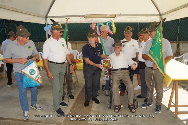 Il Gruppo Alpini di San Francesco al Campo ha festeggiato i 100 anni del Socio Magnetti Vernai Marino.