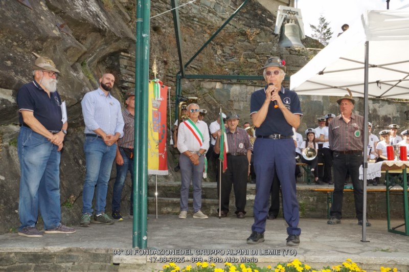 Hanno partecipato all’annuale incontro i rappresentanti di 24 Gruppi Alpini con i relativi Gagliardetti che dopo l’Alzabandiera si sono schierati all’ombra del roccione che dalla piazza del paese si innalza sino al sagrato della chiesa parrocchiale. Successivamente all’Alzabandiera don Domenico Veglio ha celebrato la Santa Messa ove sono stati ricordati gli Alpini “andati avanti”, con una memoria particolare a Giovanni Giacoletto, classe 1935 e per molti anni segretario del Gruppo, mancato a fine giugno. Dopo i saluti, il benvenuto e una breve introduzione da parte di Danilo Balagna Dena, segretario del Gruppo di Lemie, sono intervenuti il Sindaco di Lemie Daniele Gabriele, l’Assessore della Regione Piemonte Maurizio Marrone e il Consigliere di riferimento per la 7ª zona Marcello Melgara. In tutte le orazioni è stata sottolineata l’importanza degli Alpini soprattutto nei piccoli paesi dove si adoperano in fondamentali servizi di volontariato come la gestione di manutenzioni ai sentieri e aree verdi, l’organizzazione e conduzione di manifestazioni culturali, sportive e d’intrattenimento di abitanti e villeggianti: tutti complimenti apprezzati dagli Alpini che mai si “tirano indietro” quando si tratta di lavorare con orgoglio per la Comunità.