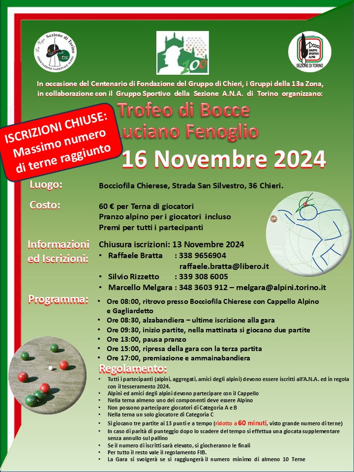 G.S.A. – Torneo Sezionale di Bocce. Chieri – NUOVA DATA